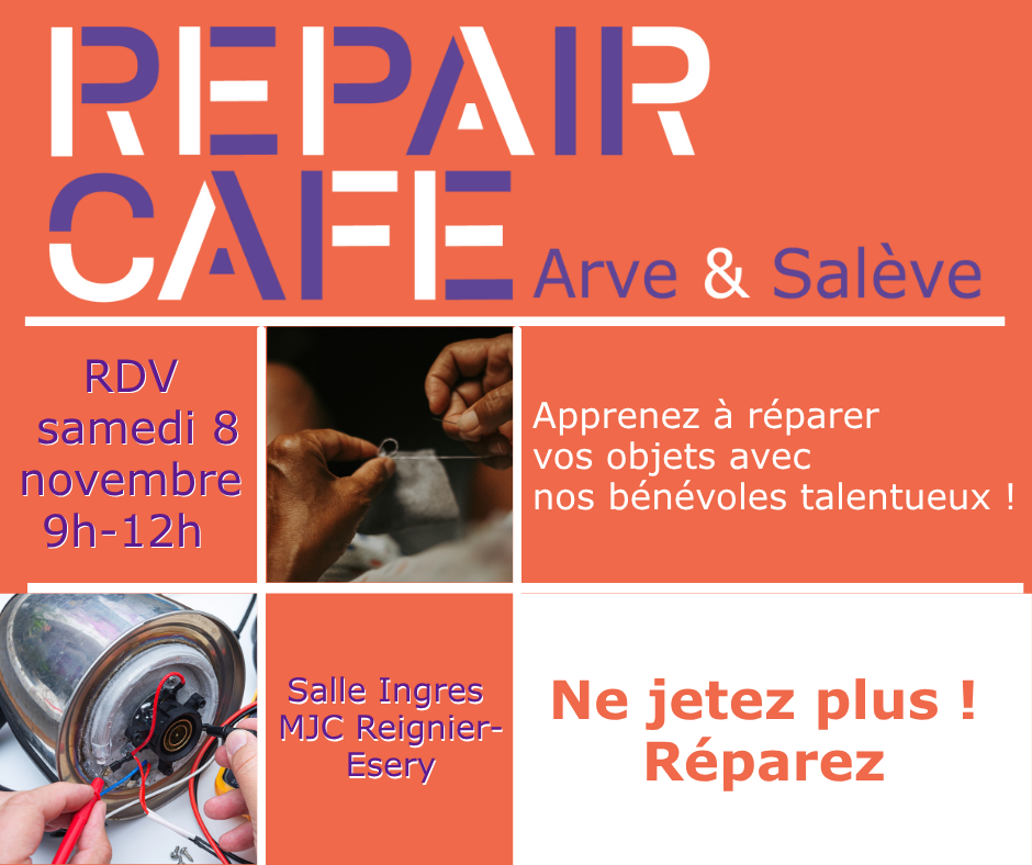 Apprenez à réparer vos objets avec l’aide de nos bénévoles talentueux : ils vous attendent samedi 8 novembre de 9h à 12h à la MJC (salle Ingres) !